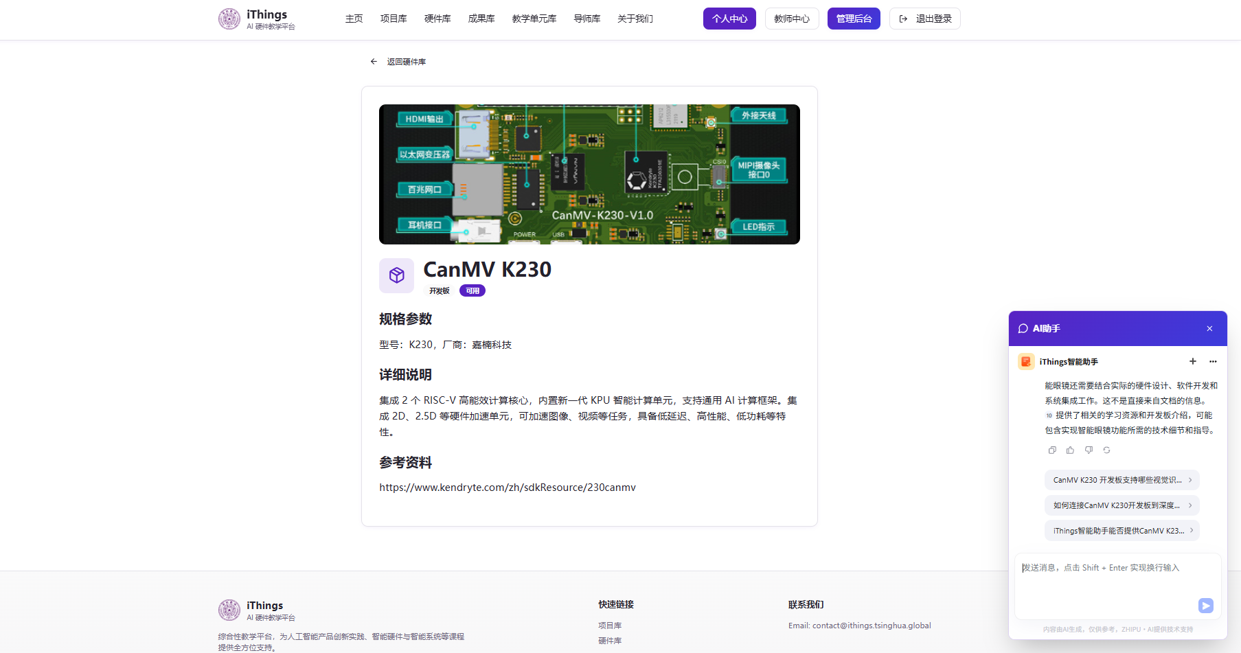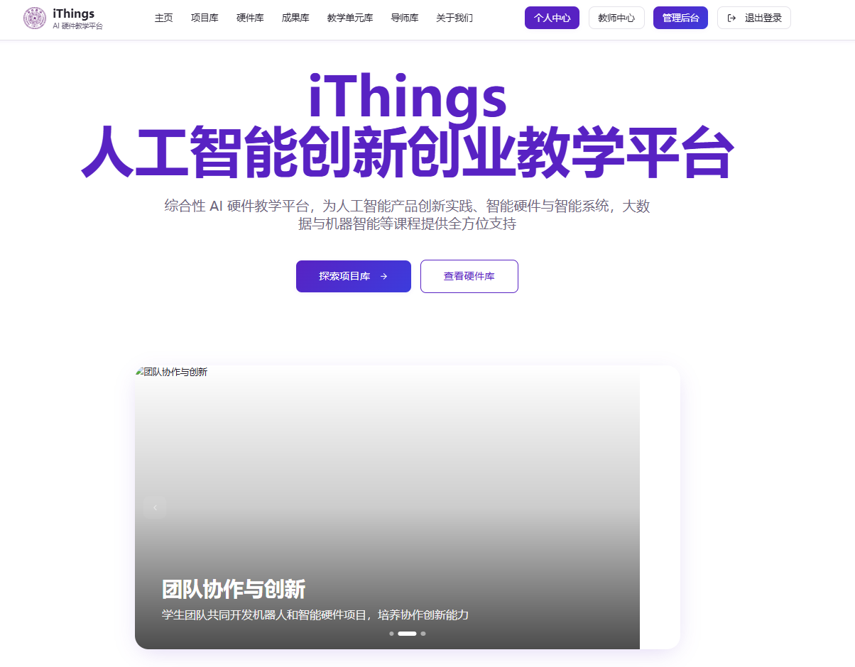 iCenter的iThings人工智能创新创业教学平台是综合性AI硬件教学平台,结合大模型提供了丰富的智能硬件及其创新解决方案,能为人工智能产品创新实践、智能硬件与智能系统、大数据与机器智能等课程提供全方位支持,助力学生开展AI领域创新创业学习与实践,提升人工智能技术应用和创新能力,是人工智能教学的重要支撑平台。
