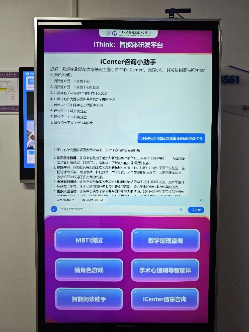 为了迎合人工智能教育时代的到来, iCenter以“人工智能+工程创新”为宗旨,开发了的大模型智能体教学平台iThink,支持各类课程基于教学目标引入智能体开发实践,提高AI赋能教学的开展、创新与探索,培养学生在创新创业、AI4S、项目创新中的实践动手能力。