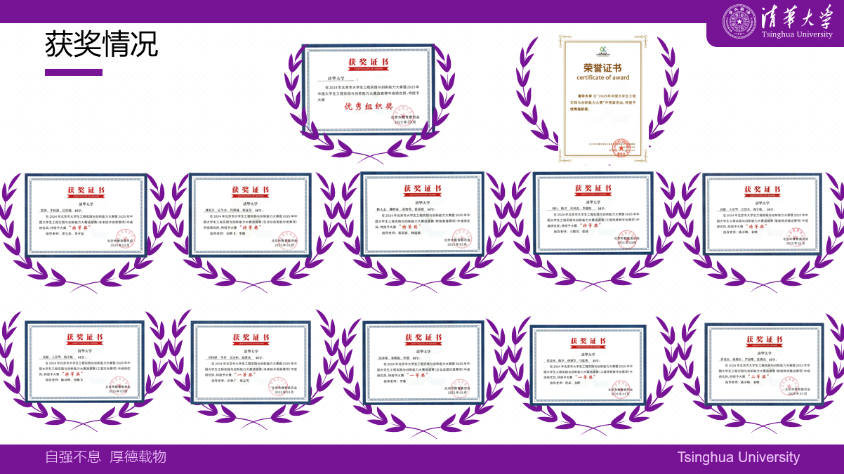 团队由清华大学34名跨院系学生组成,涵盖秀钟书院、行健书院等,组建10支队伍参与8个赛项。成员中既有零基础的大一新生,也有具备专业基础的高年级学生,最终从29所高校487支队伍中脱颖而出,展现出极强的工程实践与团队协作能力。