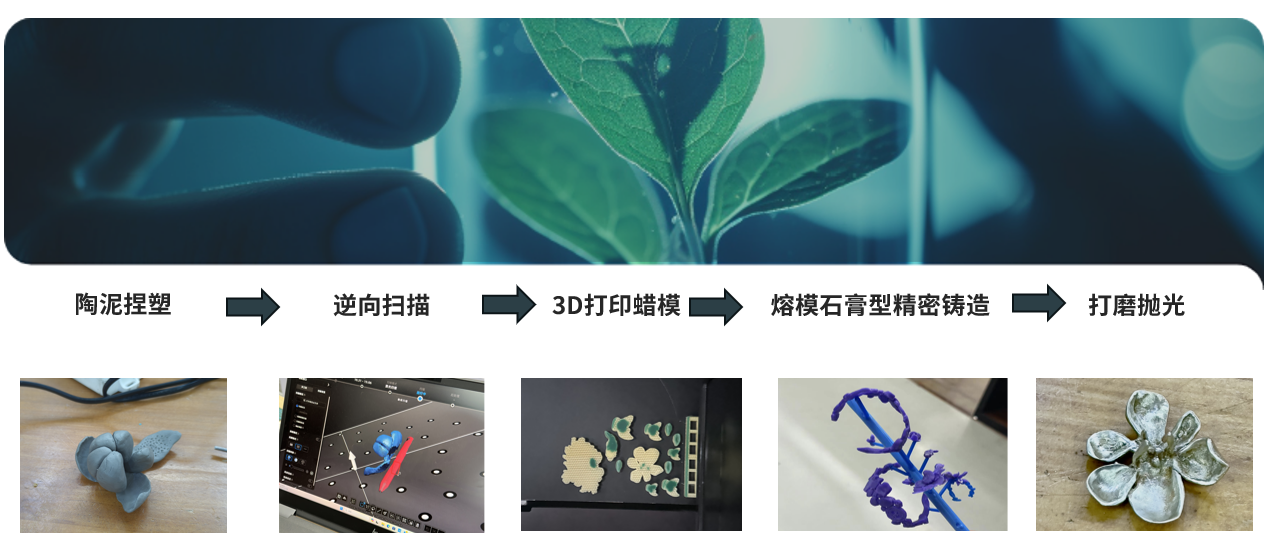 内容1:手工捏塑、逆向扫描、3D打印、精密铸造相融合的方案实施