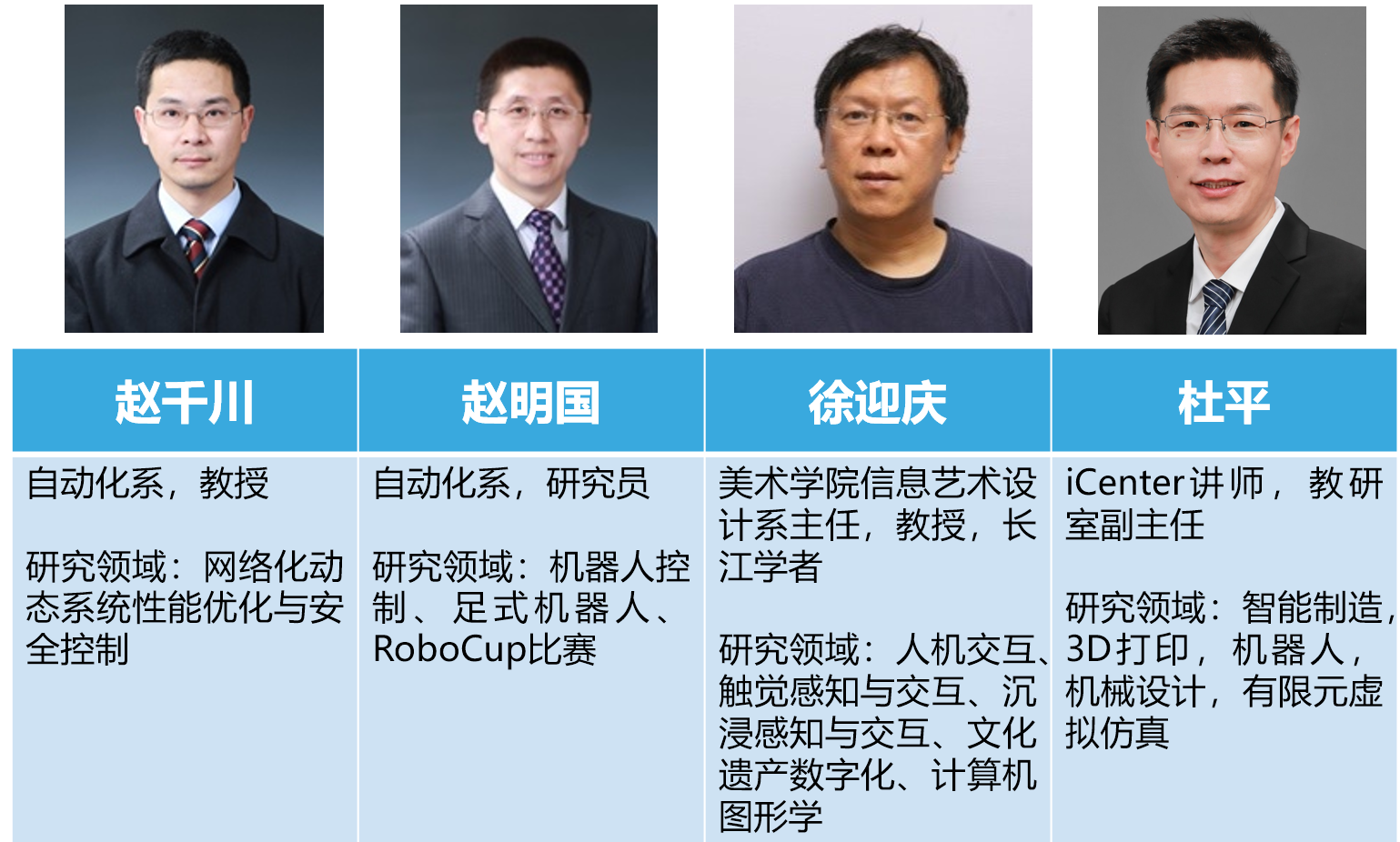 课程由清华大学自动化系赵千川教授牵头,联合自动化系、美术学院和基础工业训练中心的多位导师组成跨学科指导团队。核心教师包括赵明国(人形机器人)、徐迎庆(信息设计)、杜平(增材制造)、朱峰(智能制造)等专家。团队兼具学术深度与产业经验,长期指导SRT、大创、挑战杯项目和科创竞赛,推动学生创新成果转化为专利、论文与实际应用系统。
