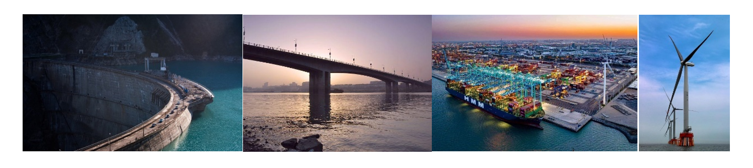 图6 水坝坝体、桥梁桥墩、港口墙身和货轮、海上风电桩基