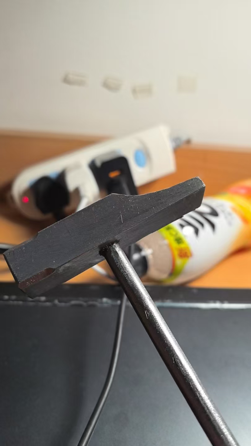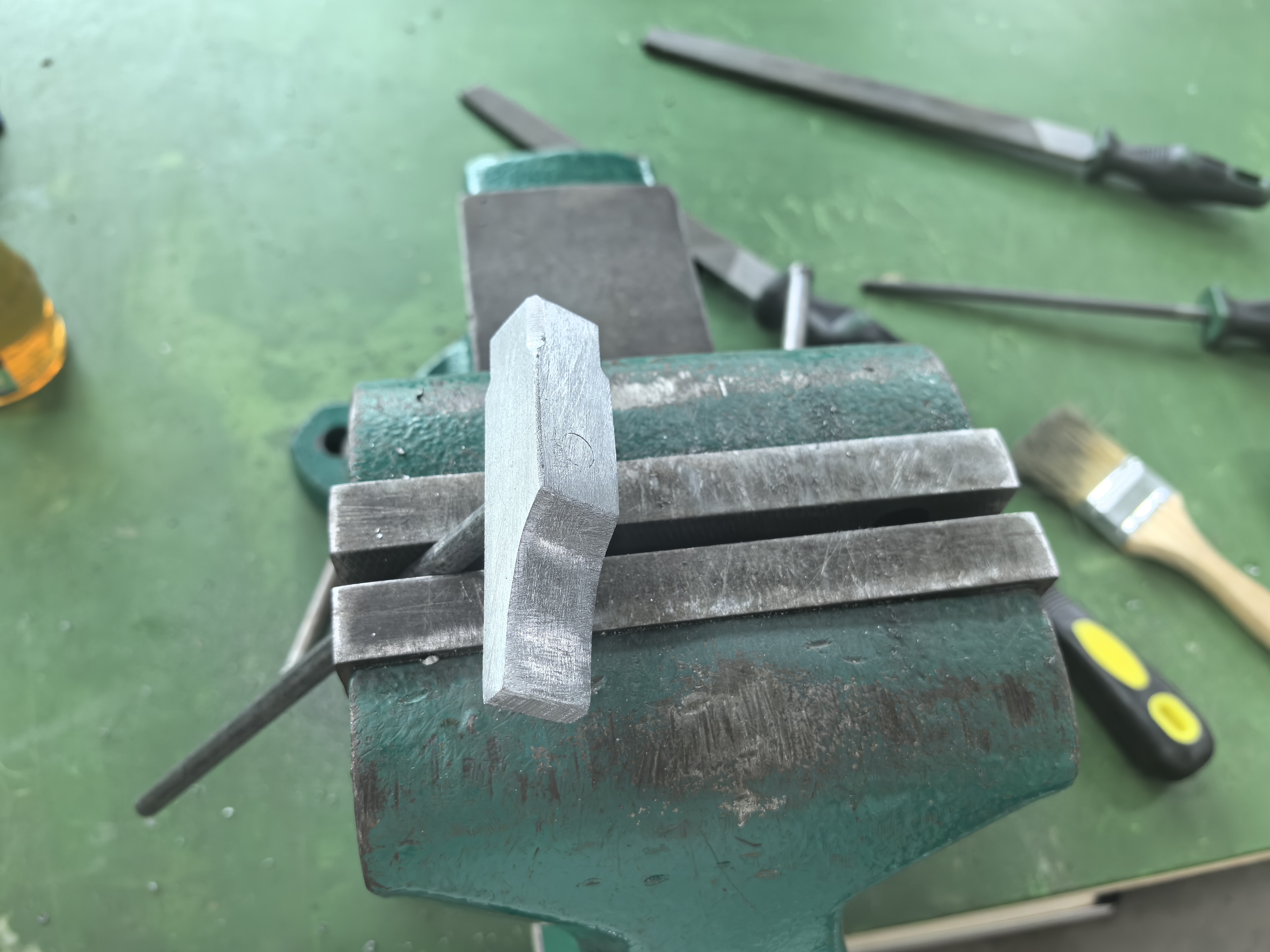 本作品为金工实习期间完成的钳工小锤。锤头由钢料经过划线、锯割、锉削等工序加工成型,打孔攻丝之后与锤柄装配并打磨抛光,整体结构牢固、比例协调。制作过程中严格按照尺寸要求操作,确保表面平整、棱角分明,功能可靠、使用顺手。作品体现了钳工基础训练中对精度、规范和耐心的要求,是一次从原材料到实用工具的完整加工实践。